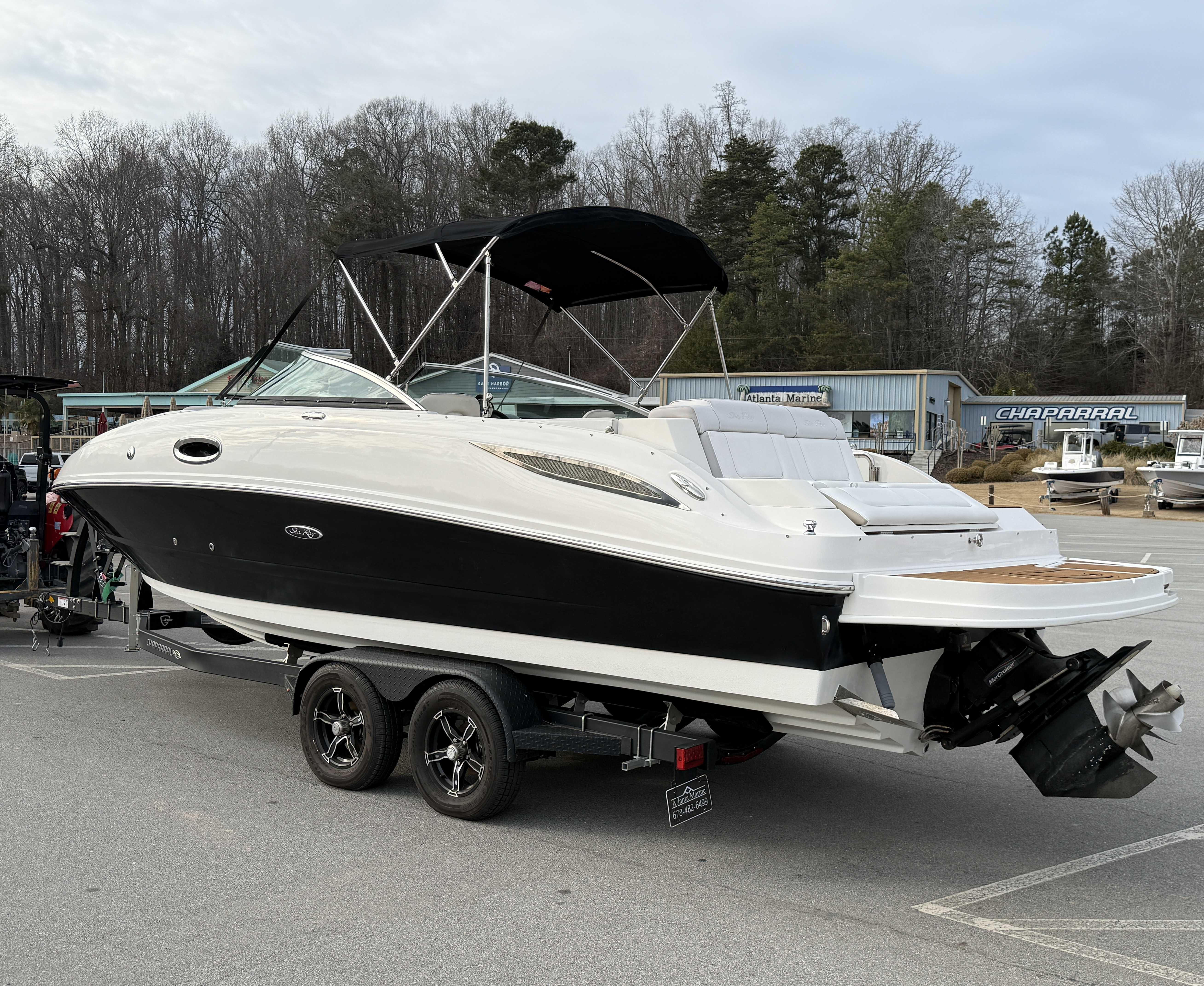 Super Clean and Powered by a strong 260 HP Mercruiser (474 hours) paired with a Bravo 3 dual-prop drive for smooth performance and impressive handling.